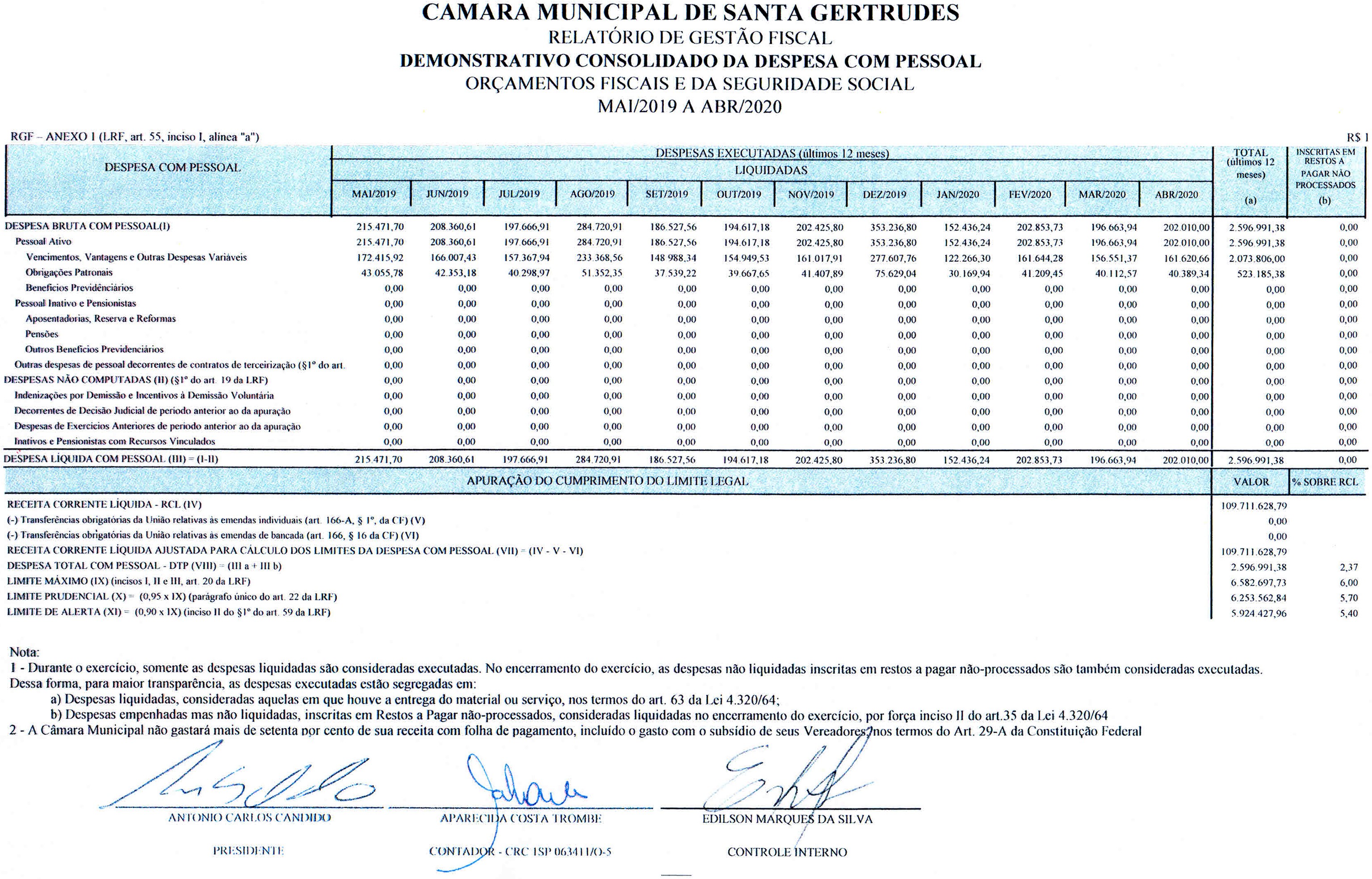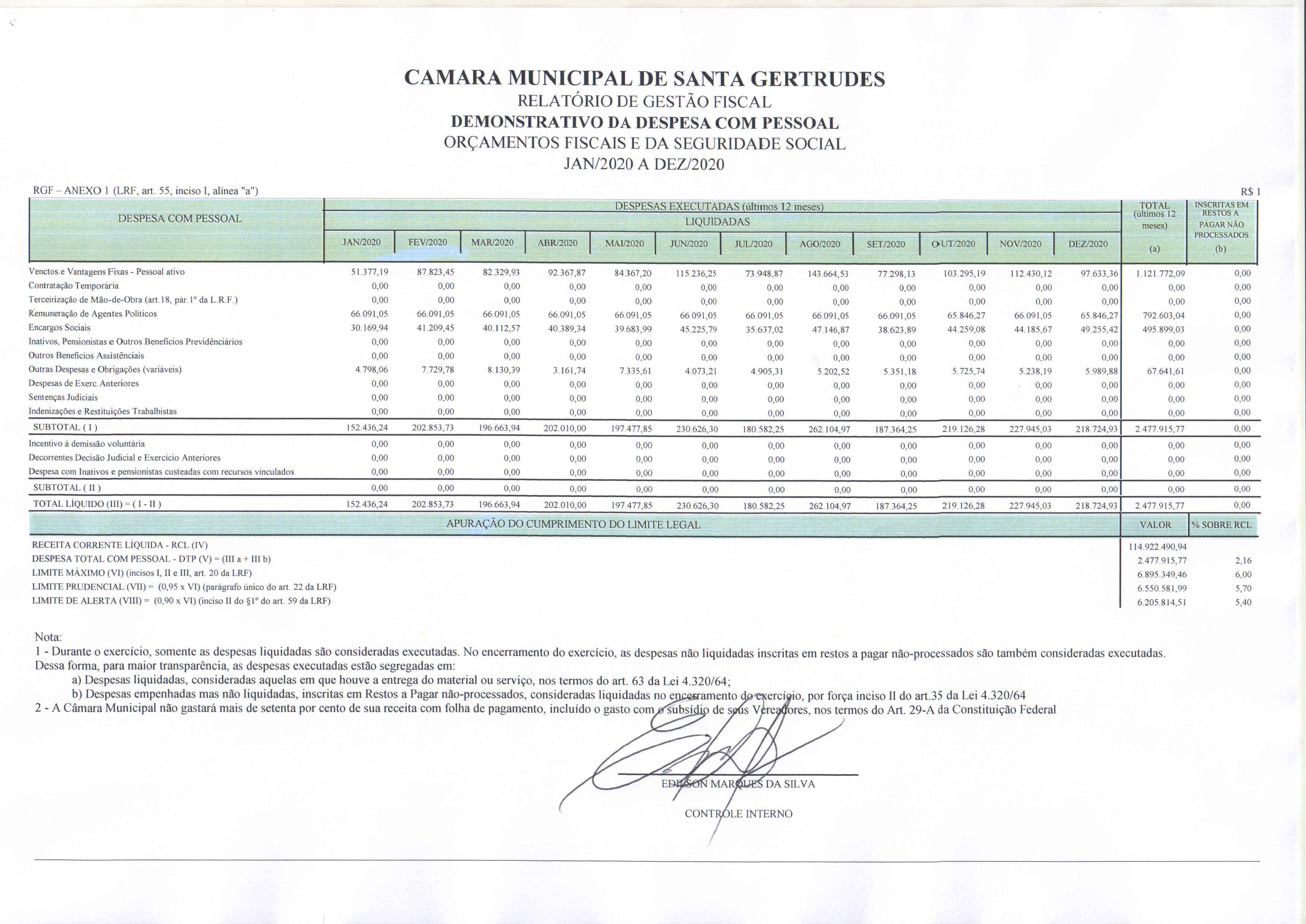 Relatório de Gestão Fiscal - Ano 2020. Clique em um item para fazer o download.