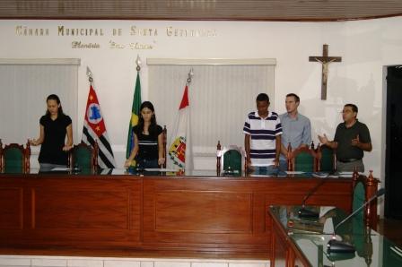 A quarta sessão ordinária, do Parlamento Jovem de Santa Gertrudes aconteceu segunda-feira, dia 21 de novembro. Os vereadores apresentaram cinco indicações solicitando reparos nas escolas, poda de árvores, o funcionamento da fonte em praça e criação de gincana entre as escolas. Esta foi a última sessão do Parlamento Jovem em 2011. Em 2012, logo no início do ano letivo haverá eleição para escolha dos novos integrantes. Iniciando os trabalhos, a primeira-secretária, Thamires Fernanda B. da Silva, leu ofícios em resposta às indicações apresentadas pelos vereadores. A secretária municipal de Educação, Edna Buoro Jorge, respondeu as indicações 8, 9, 14/2011, de autoria de Jeferson Luís Alfenes Rocha e Natália Soares Lopes, informando que medidas serão tomadas para solucionar os problemas das janelas e dos revestimentos das salas de aula, e das luminárias da Emef “Profª. Cecy App. Rocha Aguiar”. A Secretária também respondeu a indicação 87/2011, dos vereadores Charles Gabriel B. de Lima e Jenifer de Oliveira Tavares, afirmando que providenciará melhorias na entrada da Emef “João Ruffino”. O secretário municipal de Segurança Pública, Aldo Benedicto Caperucci, enviou ofício contando que “já foi orientado e instruído a guarnição da Guarda Civil, para que efetuem ronda constante e passagens escolares nos horários de entrada e saída dos alunos da Emef “João Ruffino”. O Secretário também comunica que enviou ofício ao Comandante do Destacamento da Polícia Militar de Santa Gertrudes solicitando reforço no policiamento preventivo e ostensivo próximo à Escola e, ainda, que solicitou à empresa Elétrica Tuiú, manutenção e reparos dos alarmes da Escola. As indicações apresentadas são de autoria de Mônica A. Silva de Paula, solicitando ao Prefeito, a instalação de lixeiras na Praça Carlos Buschinelli; o funcionamento da fonte da Praça Demerval da Fonseca Nevoeiro; poda ordenada das árvores localizadas ao longo da Avenida 4 e reforma da quadra esportiva da Emef “Edna Tereza Fiório”. A indicação 19/2011, assinada por todos os vereadores do Parlamento Jovem, pede ao Executivo a implantação de gincana interescolar na Rede Municipal de Ensino. Na tribuna, a vereadora Thamires reivindica a instalação de telas de proteção nos muros da quadra de esportes da Emef “Nilva Rocha”, evitando que materiais esportivos sejam lançados para fora do terreno da Escola ou em outras áreas, podendo causar acidentes, além da perda do material. A Vereadora também solicitou a troca das lâmpadas queimadas nos banheiros da referida Escola. Natália Soares Lopes contou que, apesar do ofício recebido do Secretário de Segurança Pública, os guardas não estão comparecendo todos os dias na Escola Cecy e que os orientadores precisam deixar suas atividades para acompanhar os alunos na saída das aulas. A Vereadora também pediu providências urgentes nos reparos dos revestimentos nas paredes da Escola, que continuam caindo e feriram dois alunos. “Este descaso não pode continuar. Os alunos estão com medo de novos acidentes”, afirma Natália. O Parlamento Jovem 2011 é formado pelos alunos: Jeferson Luís Alfenes Rocha, Charles Gabriel Borges de Lima, Natália Soares Lopes, Jenifer de Oliveira Tavares, Jeferson Pereira Miranda, Thamires Fernanda B. da Silva, Mônica A. Silva de Paula, Thayla Bianca de Souza Ramos e Karla Mayhume Cesário de Laya. Silvia Araujo – MTB. 16.659 Assessoria de Imprensa Câmara de Vereadores de Santa Gertrudes