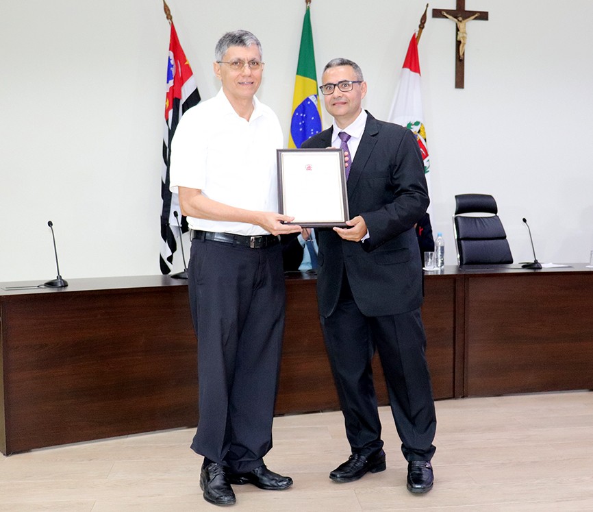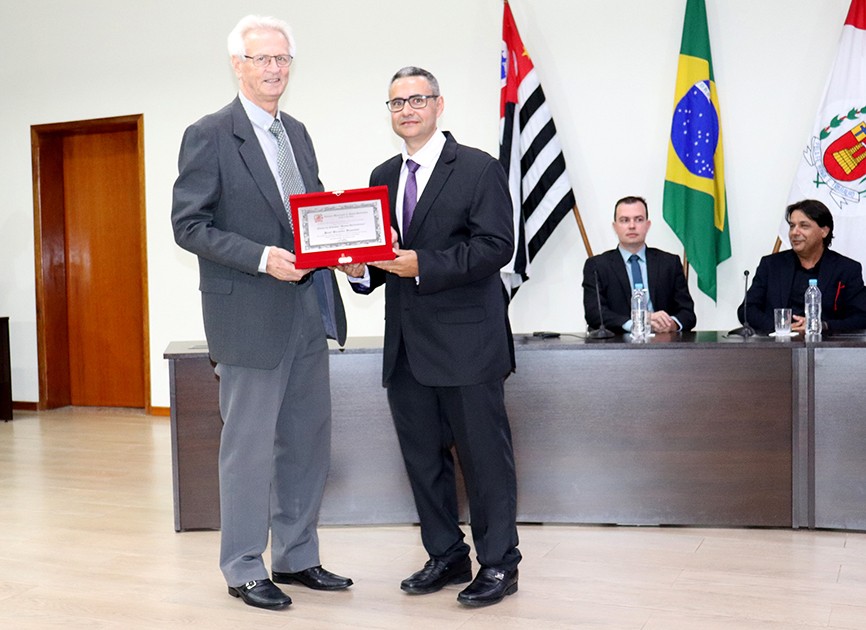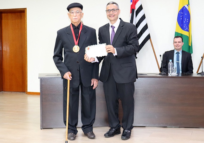 Encerrando, Antonio Carlos Candido fez a entrega da Comenda “Emília Valsechi Valdanha”, a mais alta condecoração outorgada pela Câmara, ao senhor Joaquim Ribeirão Garcia – o conhecido “tio Jaque da perua amarela” (ex-comerciante e motorista); e à Maria Helena Ferranti Bichara (educadora e pedagoga, foi Secretária de Educação e de Cultura, catequista e atuou como voluntária), representada pelo seu filho, Conrado Bichara.