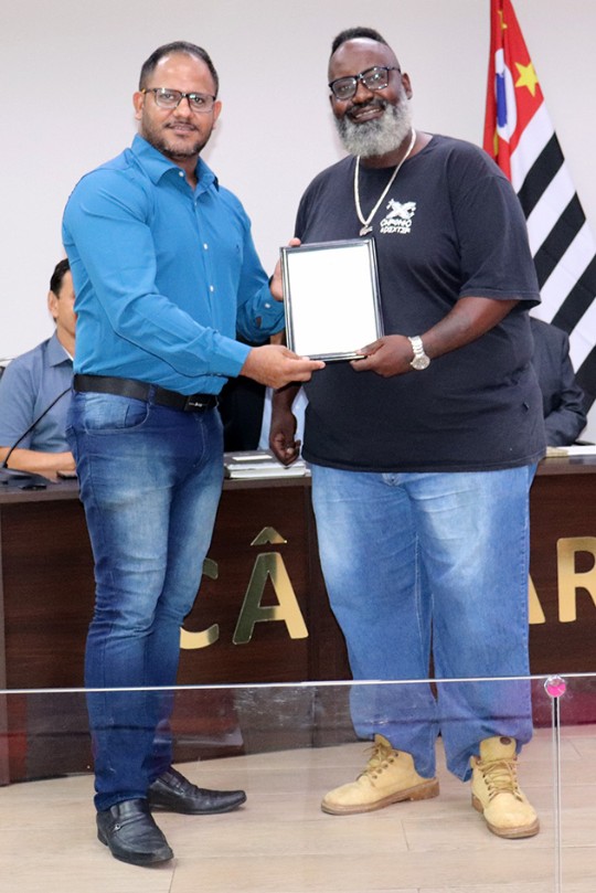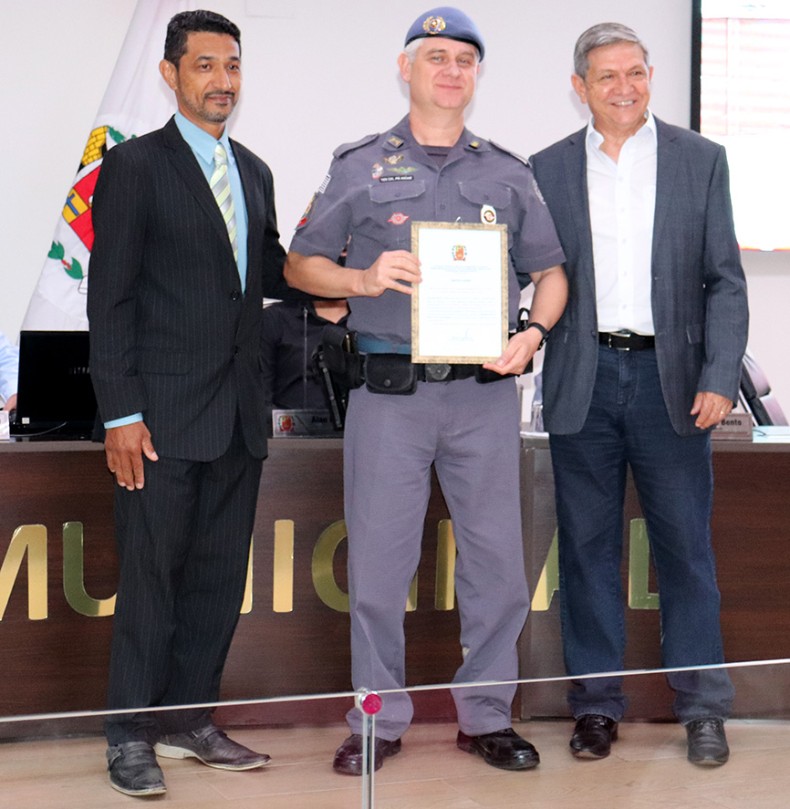 Sivaldo da Água é o autor das moções de Parabéns, Aplausos e Reconhecimento entregues na noite aos policiais Gilmárcio Pires da Silva – segundo sargento da Polícia Militar – Pelotão de Santa Gertrudes, pelos “serviços prestados, proporcionando segurança e tranquilidade às famílias”; e ao tenente coronel André Luiz Pereira Leite Vianna, pelos serviços prestados ao 37º BPM/I - Rio Claro, pela quinta vez consecutiva, condecorado com o Prêmio Polícia Militar da Qualidade. O Vereador convidou o prefeito Lázaro Noé da Silva (Gino da Farmácia), a participar das entregas.