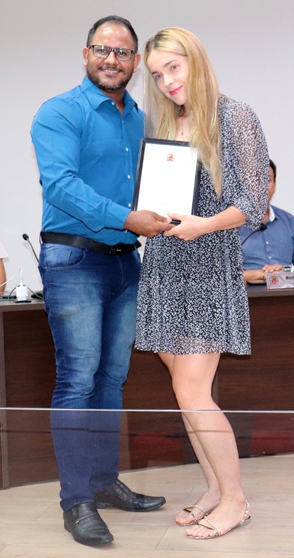 Presidindo a mesa de trabalhos, o presidente da Câmara, Marcelo Ferreira (Dr. Marcelo-PL), deu início aos trabalhos, convidando os vereadores autores das proposituras a iniciarem as entregas, chamando individualmente cada um dos homenageados.