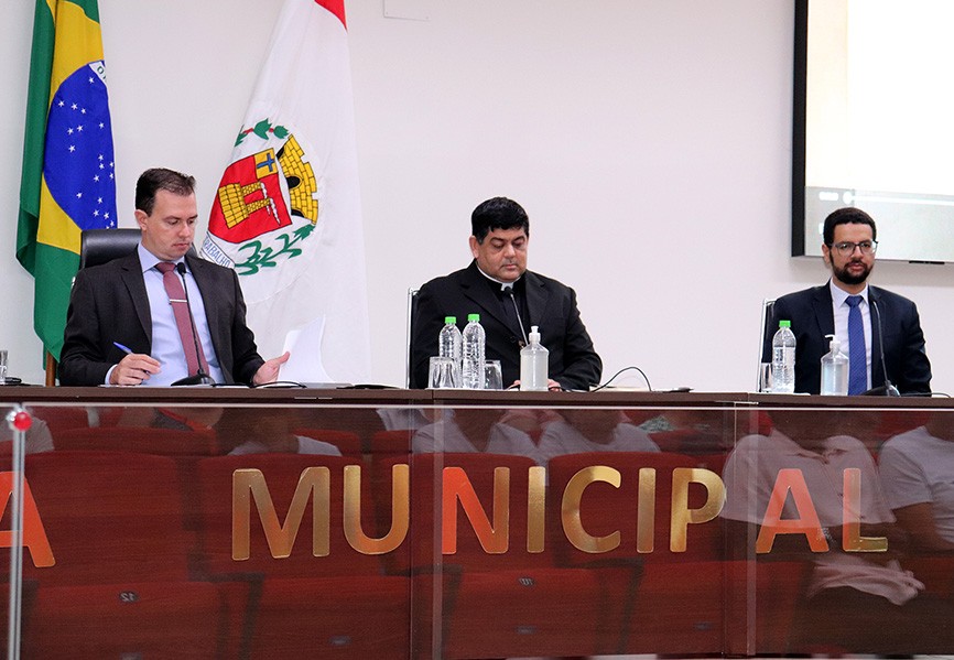 Responsável pelo cerimonial da 7ª sessão solene de 2023, Edmilson Valdanha convidou o vice-presidente da Câmara, Willian Bento (PTB), a presidir os trabalhos e, para compor a mesa, Alan Basteli, o padre Paulo Sérgio, o prefeito Lázaro Noé da Silva (Gino da Farmácia), e os vereadores Clayton Robert Santos Barros (Clayton do Espetinho-Republicanos), Luiz Aparecido Basso (PL), Sivaldo Elias (Sivaldo da Água-PSD), e Washington Luiz Pereira (Washington dos Vasos-PSDB).