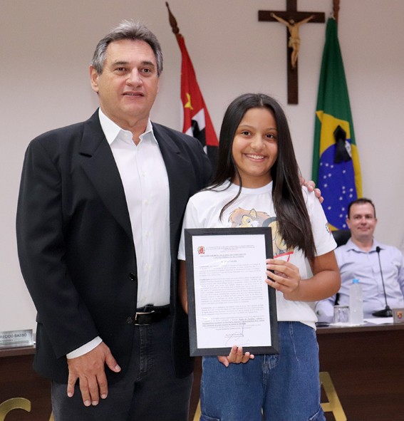 Receberam as honrarias Maria Eduarda de Paula Miranda, do 5º ano A, e Ana Júlia Murari, do 5º ano B, da Emef Professora Cecy Apparecida Rocha de Aguiar; e Andriely da Silva Simão, do 5º ano B, e Emanuelle Vitória Silva Gomes, do 5º ano C, da Emeif Prefeito Antônio Filier. Henrique Leite Glicério, do 5º ano A, da Emeif Prefeito Antônio Filier, também foi homenageado, mas não pôde participar da solenidade,