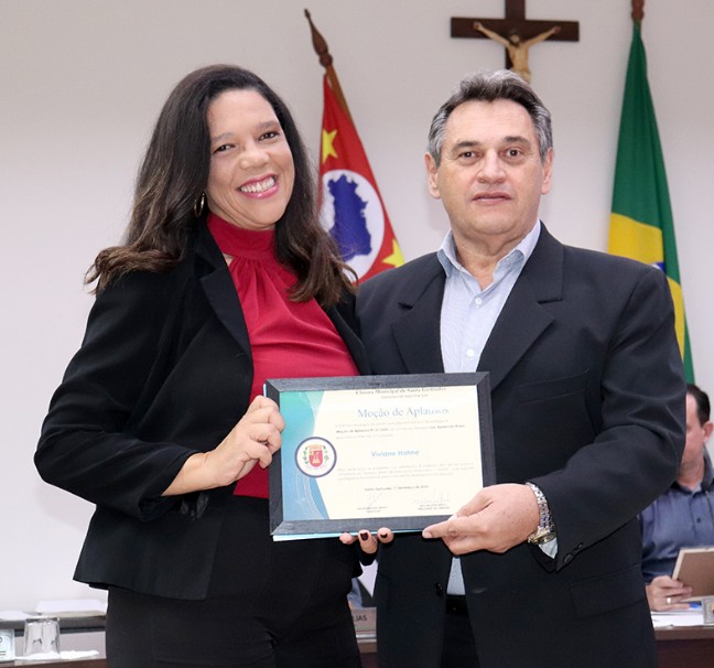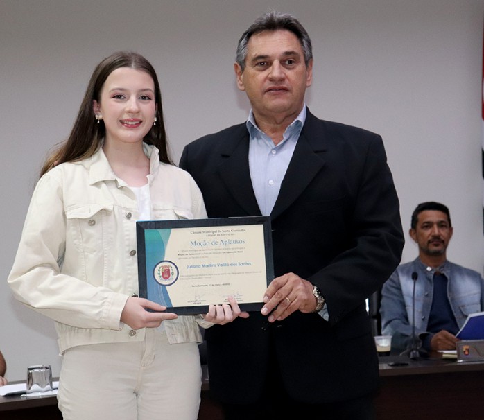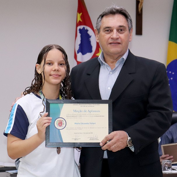 O vereador Luiz Aparecido Basso (PL) – vice-presidente da Câmara, fez a entrega oficial das moções de Parabéns, Aplausos e Reconhecimento aos alunos medalhistas na Olimpíada do Tesouro Direto de Educação Financeira (Olitef), e aos professores responsáveis pela qualificação dos estudantes. A sessão aconteceu no dia 2 de junho, no Plenário Íria Hansen, na sede do Legislativo.