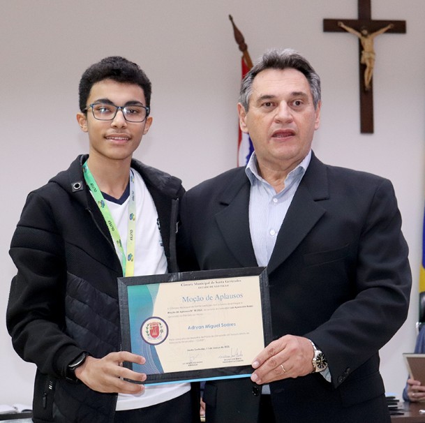 Adryan Miguel Soares, Daniel Teixeira Pinto e Rodolfo Leoni de Oliveira foram homenageados pelos vereadores por serem destaque da Olimpíada, conquistando medalhas de prata. Os professores que participaram diretamente na qualificação dos alunos, Viviane Hohne, Ênio Pereira da Paixão e Renan Hermenegildo Matos Rocha também foram agraciados com moções.