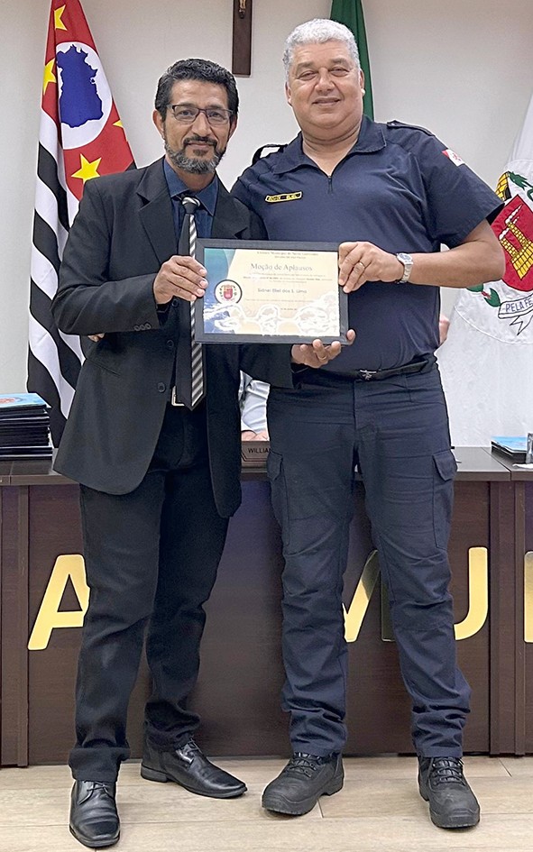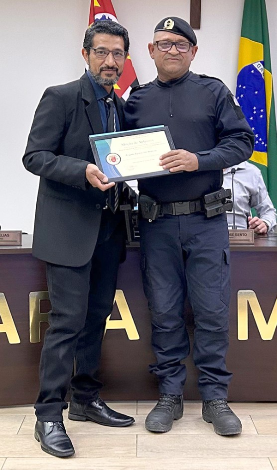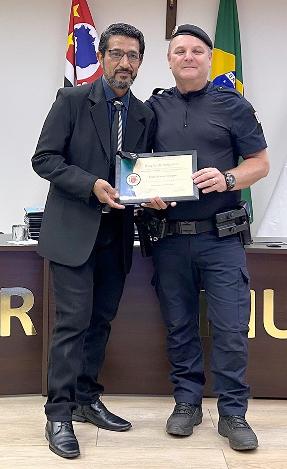 O presidente da Câmara, Willian Bento (PL), deu início aos trabalhos parabenizando os homenageados e convocou o vereador Sivaldo Elias a iniciar as entregas aos guardas civis municipais Ademir Aparecido Barbosa, Dirceu Aparecido Fassis, Sidnei Eliel Lima, José Roberto Litoldo e Régis Luciano Cigagna, que este ano completam 25 de atuação na Corporação.