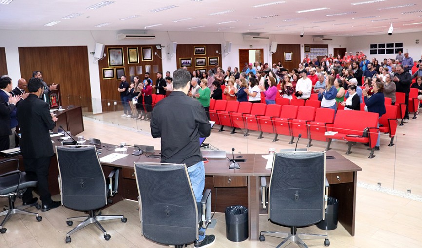 Evento realizado na noite do dia 20 de outubro oficializou a entrega de moções a funcionários públicos, estudantes, profissionais, atletas, esportistas e religiosos. As propostas, aprovadas por unanimidade pelos legisladores, são de autoria dos vereadores Luiz Aparecido Basso (PL), Clayton Robert Santos Barros (Clayton do Espetinho-Republicanos), José Silvanio da Silva Lucena (Pastor Silvanio Ceará-PP), Washington Luiz Pereira (Washington dos Vasos-PSDB), Marcos Gomes de Oliveira (Marcos do Gás-PL), e Sivaldo Elias (Sivaldo da Água-PP).
