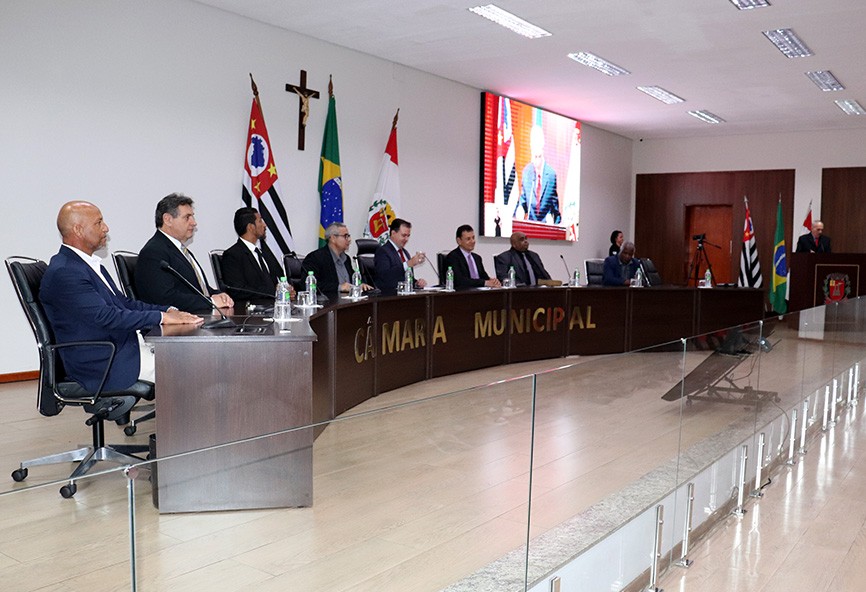 A mesa de honra da sexta sessão solene do ano esteve composta por: no cento, o presidente da Câmara, Willian Bento, ladeado pelo vice-prefeito – Antonio Carlos Candido, e pelos vereadores: Washington dos Vasos – segundo-secretário e autor da propositura, Luiz Basso (PL) - vice-presidente, Sivaldo Elias (Sivaldo da Água-PP) – primeiro-secretário, e Marcos Gomes de Oliveira (Marcos do Gás-PL); pelo presidente do Conselho de Pastores – Pedro Gaspa, e o Pastor Albanir.