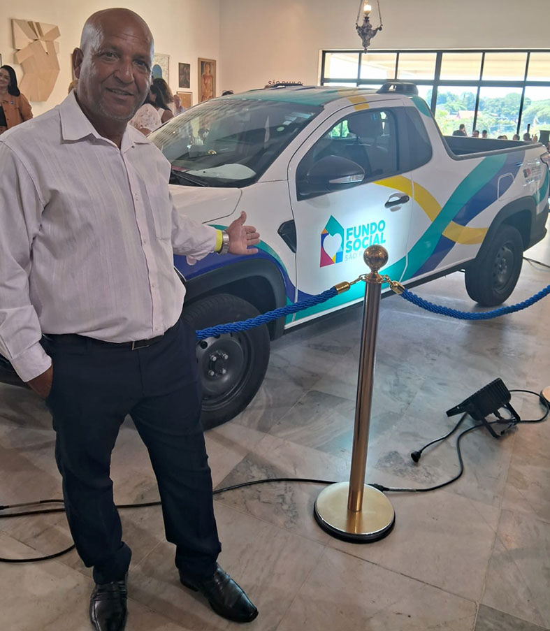 A outra conquista do vereador Marcos do Gás é um veículo a ser utilizado pelos integrantes do Fundo Social e Solidariedade local. No dia 23 de março, o Vereador participou de evento no Palácio dos Bandeiras, em São Paulo, quando foi realizada a entrega oficial do veículo, resultado direto da Indicação nº 24.085/2025, de autoria da deputada Delegada Graciela, novembro de 2025, atendendo solicitação conjunta do Vereador, do prefeito Lázaro Noé da Silva (Gino da Farmácia), e da primeira-dama Rosária Rubiño Sábio.