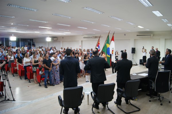 A sessão solene que completa do ciclo eleitoral foi conduzida pelo mestre de cerimônia Edmilson Valdanha (técnico legislativo) e presidida pelo vereador Marcelo Ferreira (Dr. Marcelo-PSD) que abriu a sessão e, seguindo os trâmites, convidou os diplomados: vereadores, o prefeito Rogério Pascon e o vice, Glalson Chamon, para fazerem a leitura do termo de compromisso, onde prometem cumprir a constituição federal, a estadual, a lei orgânica, e trabalhar pelo progresso do Município e o bem-estar da população.