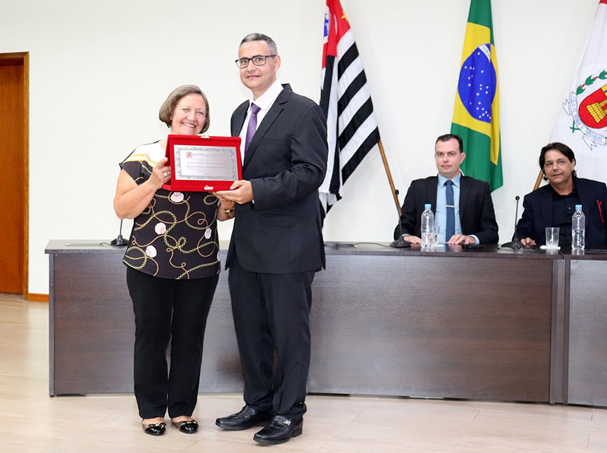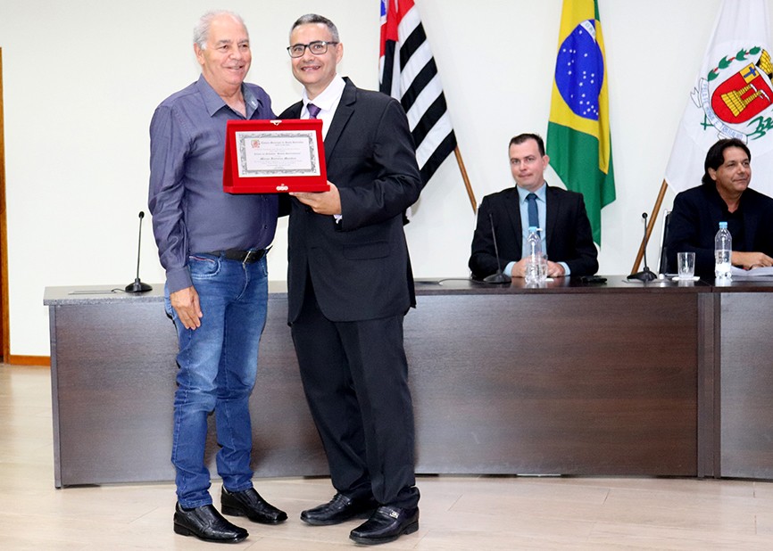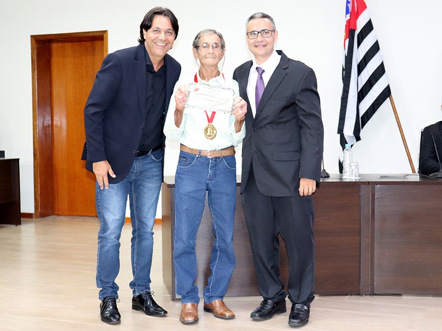 Encerrando, Antonio Carlos Candido fez a entrega da Comenda “Emília Valsechi Valdanha”, a mais alta condecoração outorgada pela Câmara, ao senhor Joaquim Ribeirão Garcia – o conhecido “tio Jaque da perua amarela” (ex-comerciante e motorista); e à Maria Helena Ferranti Bichara (educadora e pedagoga, foi Secretária de Educação e de Cultura, catequista e atuou como voluntária), representada pelo seu filho, Conrado Bichara.