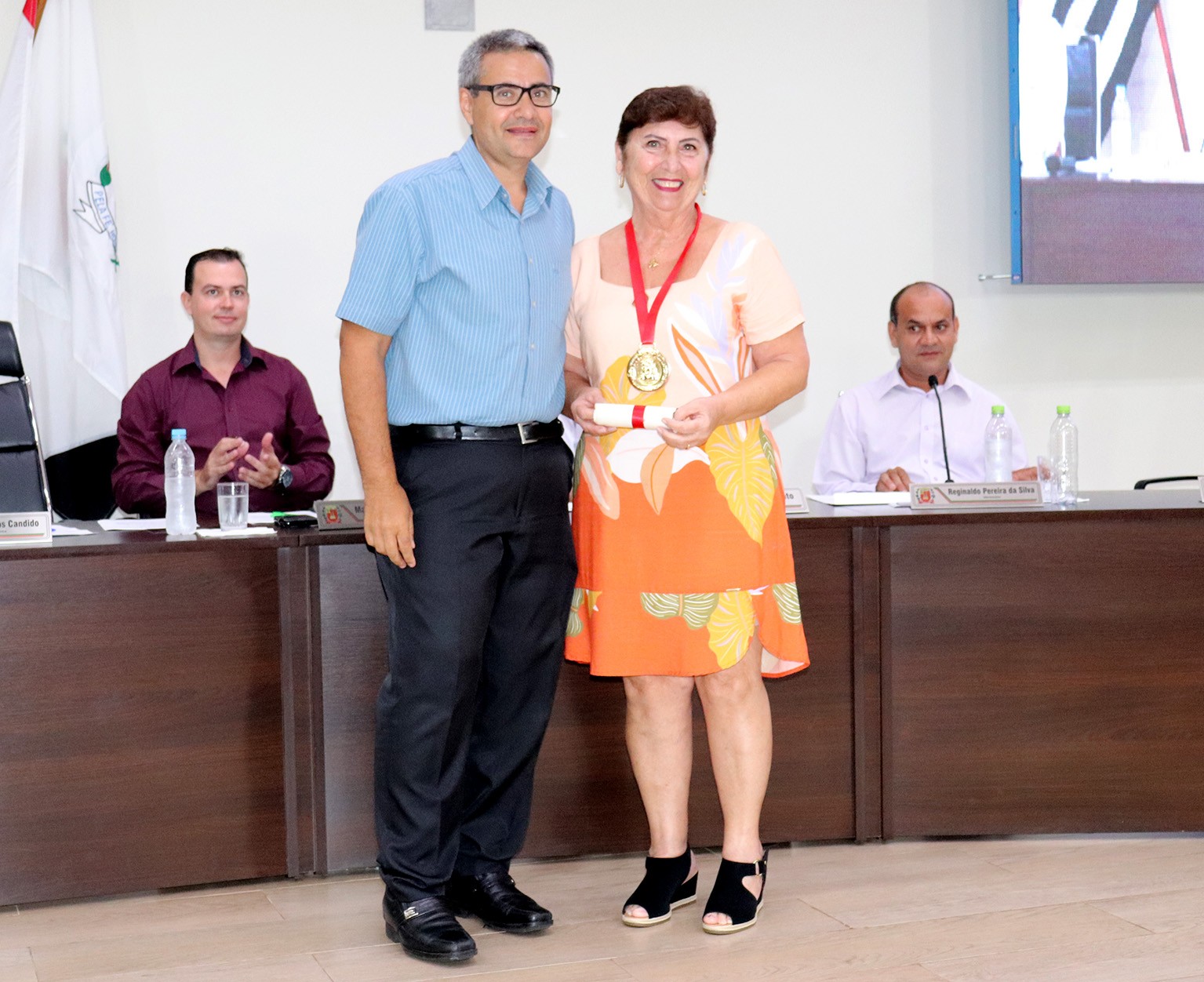 Participaram da sessão solene e compuseram a mesa principal os vereadores: Antonio Carlos Candido, José Luis Vieira (Ratinho-MDB), Aécio Bisesto (Paraná-PTB), Alexandro Souza Vieira, Isaias Lino do Couto (PSC), Willian Bento (PTB), e Reginaldo Pereira da Silva (Totó-PSC).