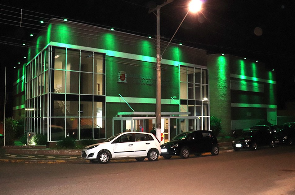 A fachada do prédio da Câmara Municipal de Santa Gertrudes, que a cada mês “é pintada” nas cores das campanhas voltadas à prevenção de doenças, está iluminada na cor verde, uma homenagem dos vereadores e funcionários da Casa aos profissionais que atuam no enfrentamento ao novo coronavírus, a Covid-19.