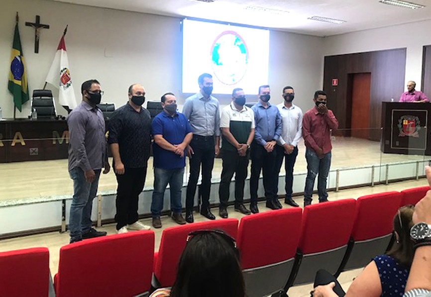 A mesa principal da reunião foi formada por Clayton do Espetinho, Luiz Basso, prefeito Gino, Bruno Lima, Sivaldo da Água, Alex de Madureira, Alan Basteli, Willian Bento e José Pereira – presidente da Câmara de Rio Claro.