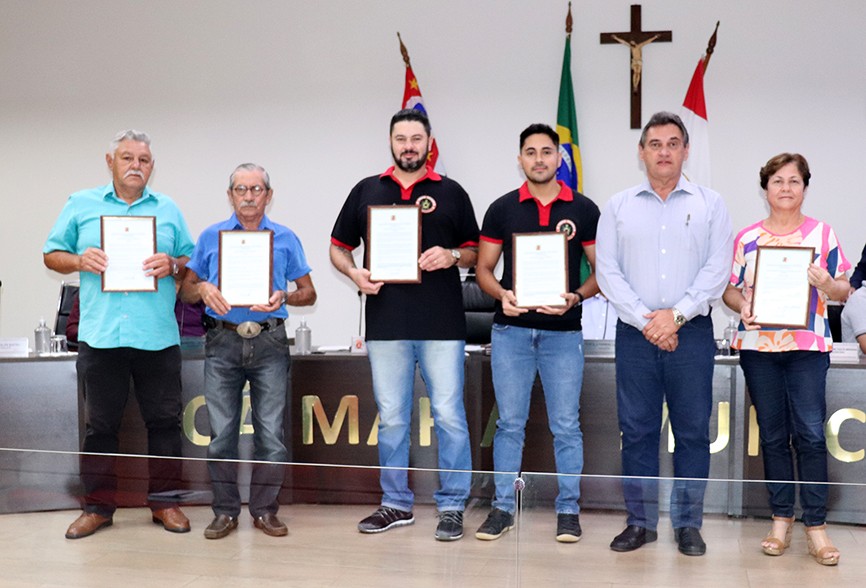 Os romeiros Antônio Benedito Cordeiro e José Ribamar Barroso Sampaio foram agraciados com moções de Parabéns, Aplausos e Reconhecimento pelos sete anos de cavalgada ao Santuário Nacional de Aparecida e sexto ano ao Santuário Nossa Senhora Aparecida, de Tambaú. Encerrando, foi entregue a Moção à dupla Odival Fernando Bilatto e Gabriel Rodrigues Mendes de Lima, tricampeã do torneio de truco Dia da Cidade e campeã do Regional de Truco Mano´s Bar 2022. Todas as proposituras apresentadas pelo vereador Luiz Basso foram aprovadas por unanimidade.