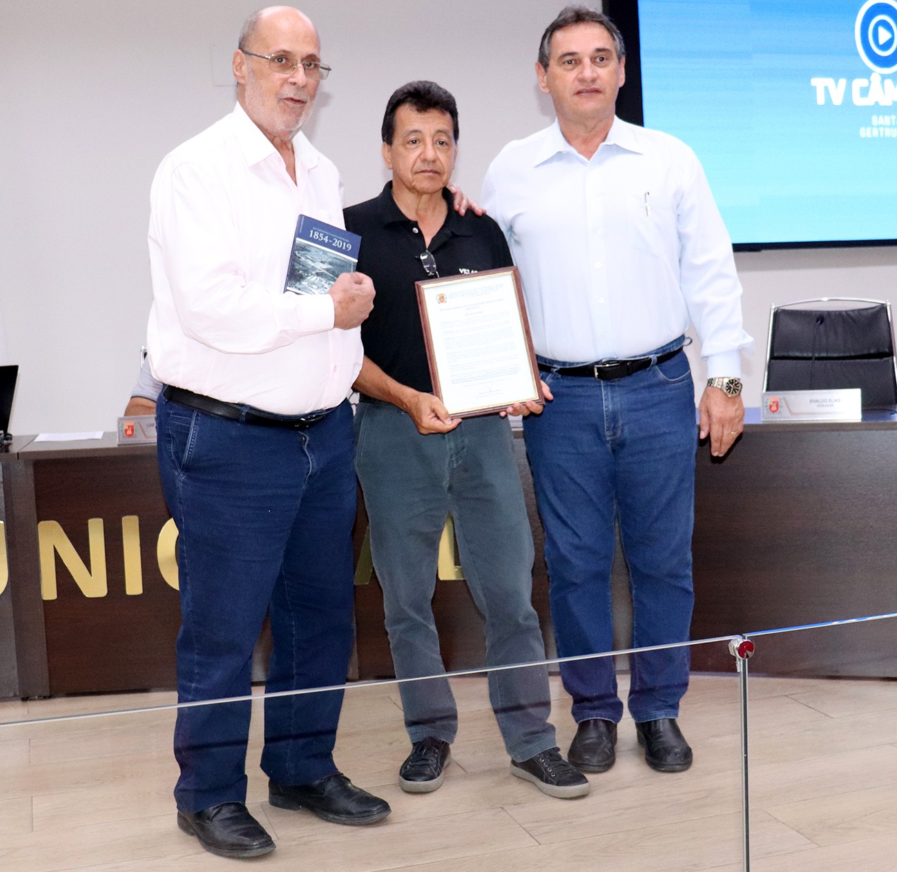 Na mesma noite, foi outorgada a Moção de Parabéns, Aplausos e Reconhecimento à Família Buschinelli pelos 100 anos de “trajetória de sucesso e pioneirismo”, comemorados no dia 11 de outubro. Antônio Luiz Ferreira, o conhecido Projeto, foi o porta-voz da Família e entregou um livro ao presidente da Casa, Marcelo Ferreira (Dr. Marcelo-PL), e ao vereador Basso, contanto a história da Família: “De Curtatone a Santa Gertrudes – 1854 a 2019 - 165 anos de história da Família Buschinelli, de autoria de Filipe Buschinelli Della Coletta.