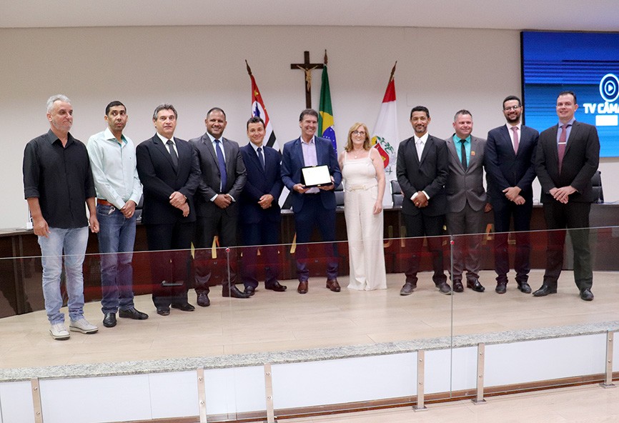 A 4ª sessão solene do ano foi presidida por Willian Bento (PTB), vice-presidente da Câmara. O Vereador abriu os trabalhos e, na sequência, o mestre de cerimônia, Edmilson Valdanha, deu sequência à parte protocolar e convidou o autor da propositura, vereador Washington Luiz Pereira (Washington dos Vasos-PSDB), a fazer a entrega da placa de honra ao mérito a Pedro Ricardo Neri.
