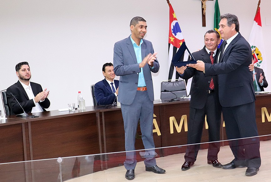 Abrindo a primeira sessão solene do ano, após a apresentação do Hino Nacional e leitura dos documentos, o mestre de cerimônia da noite, Edmilson Valdanha, passou a palavra ao vereador Willian Bento (PTB), vice-presidente da Casa, e presidente da sessão, que convidou o autor das proposituras a iniciar os trâmites