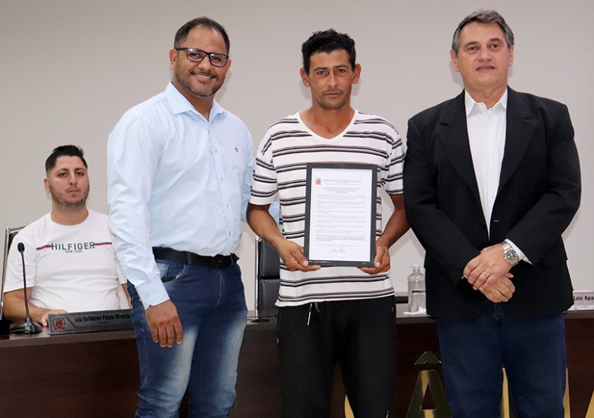 Para a entrega das próximas moções, o vereador Clayton Robert Santos Barros (Clayton do Espetinho-Republicanos), foi convocado para acompanhar Luiz Basso, por também ser autor.