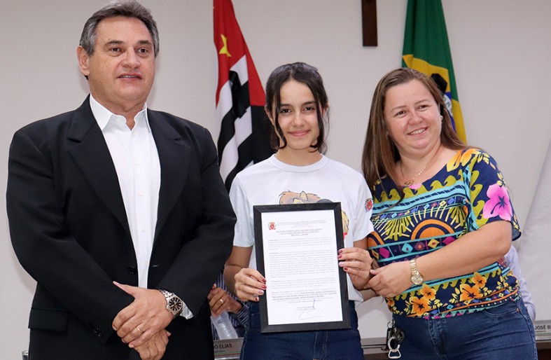 Receberam as honrarias Maria Eduarda de Paula Miranda, do 5º ano A, e Ana Júlia Murari, do 5º ano B, da Emef Professora Cecy Apparecida Rocha de Aguiar; e Andriely da Silva Simão, do 5º ano B, e Emanuelle Vitória Silva Gomes, do 5º ano C, da Emeif Prefeito Antônio Filier. Henrique Leite Glicério, do 5º ano A, da Emeif Prefeito Antônio Filier, também foi homenageado, mas não pôde participar da solenidade,