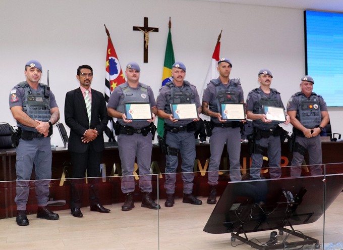 O vereador Sivaldo Elias (Sivaldo da Água-PP), homenageou os policiais militares envolvidos em ocorrência de engasgo de criança, propondo moções de Parabéns, Aplauso e Reconhecimento, que foram aprovadas por unanimidade pelos legisladores. A entrega das honrarias aconteceu em evento realizado na noite do dia 12 de maio, no Plenário Íria Hansen, na sede da Câmara Municipal.