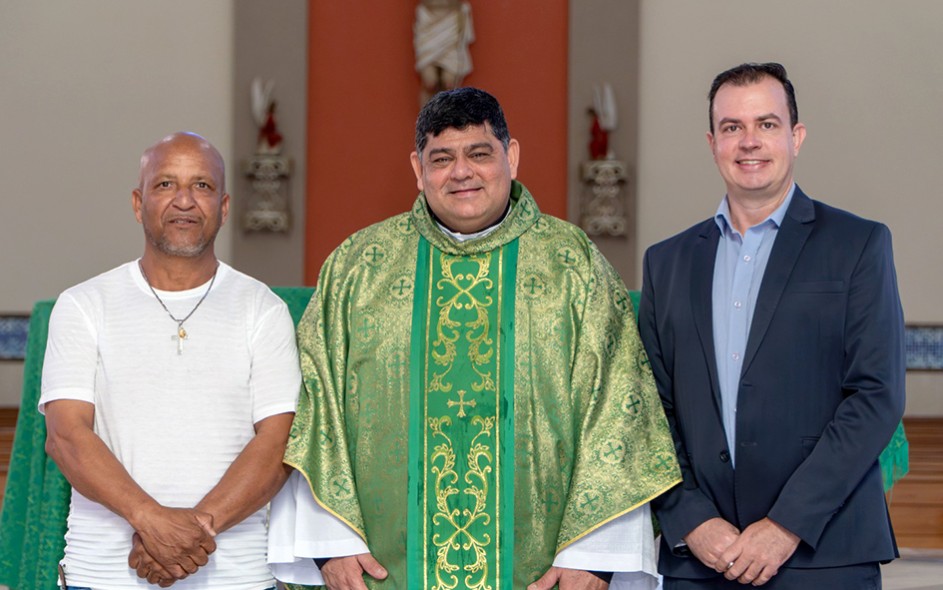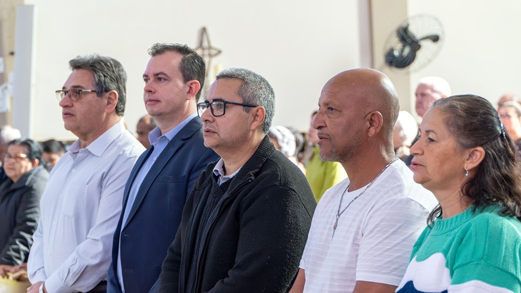 No domingo passado, dia 10 de agosto, o presidente e o vice-presidente da Câmara, Willian José Bento e Luiz Aparecido Basso (ambos do PL), e Marcos Gomes de Oliveira (Marcos do Gás-PL), acompanhados do vice-prefeito, Antonio Carlos Candido, participaram da Missa em Ação de Graças ao Aniversário de Santa Gertrudes.