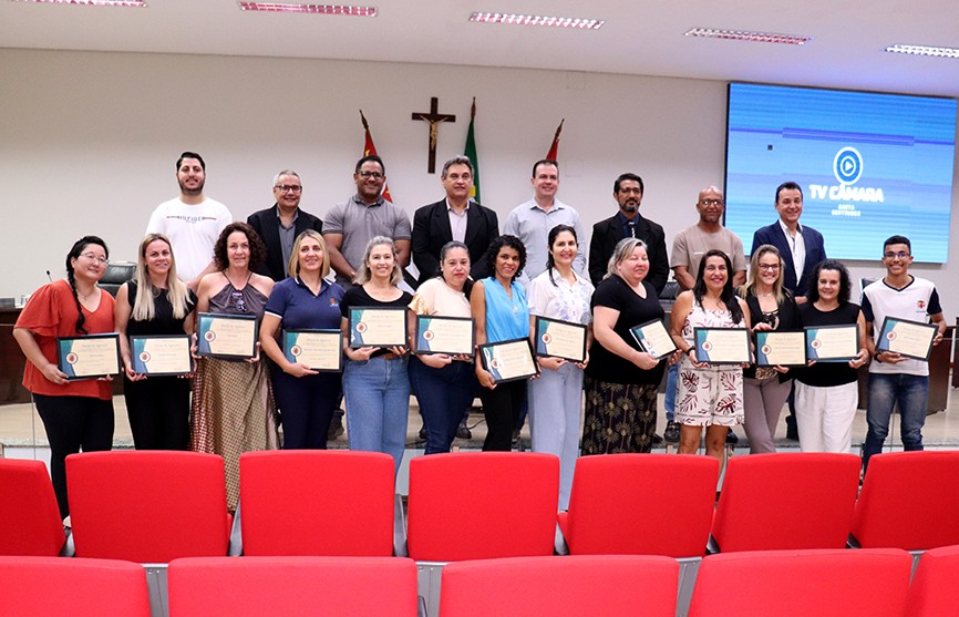 Mais uma rodada de entrega de certificados aos profissionais e estudante que se destacaram em suas funções, aconteceu no início da noite do dia 15 de setembro, no Plenário Íria Hansen, na sede da Câmara. As moções de Aplausos e Reconhecimento são de autoria dos vereadores Luiz Basso (PL), Sivaldo Elias (Sivaldo da Água-PP), e Washington Luiz Pereira (Washington dos Vasos-PSDB), e foram aprovadas por unanimidade dos demais legisladores.