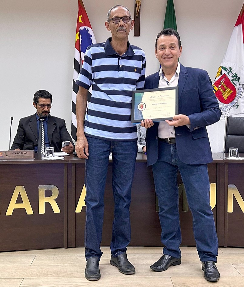 Washington dos Vasos concluiu as entregas, oficializando a homenagem à Selma Luzia da Silva Alves, enfermeira, pelos 23 anos de atuação em Santa Gertrudes, “tornando-se referência em sua profissão, contribuindo não apenas tecnicamente, mas também com humanidade, acolhimento e carinho para com os pacientes e suas famílias”; e a Alzemar Vieira Ribeiro, motoristas, pelos 22 anos de trabalho “desempenhado com zelo, responsabilidade e profissionalismo; ofício fundamental para o bom funcionamento dos serviços públicos”.