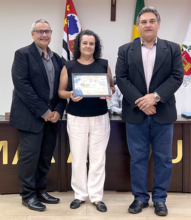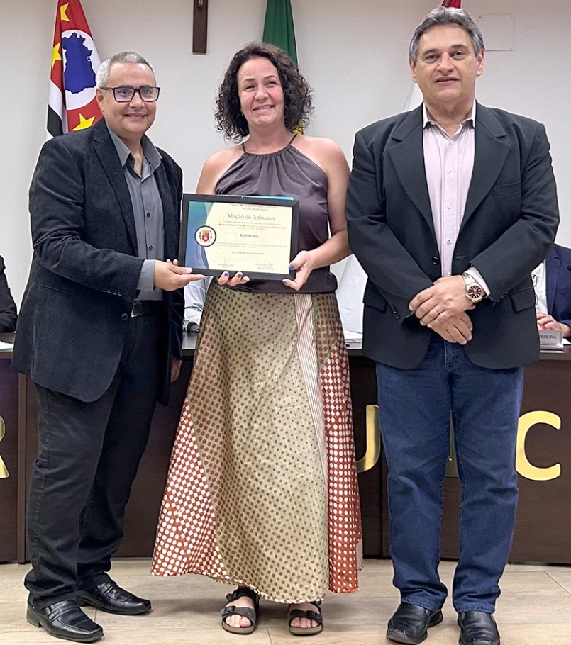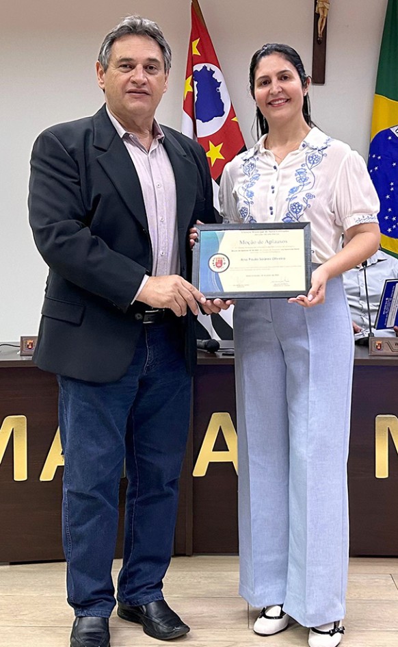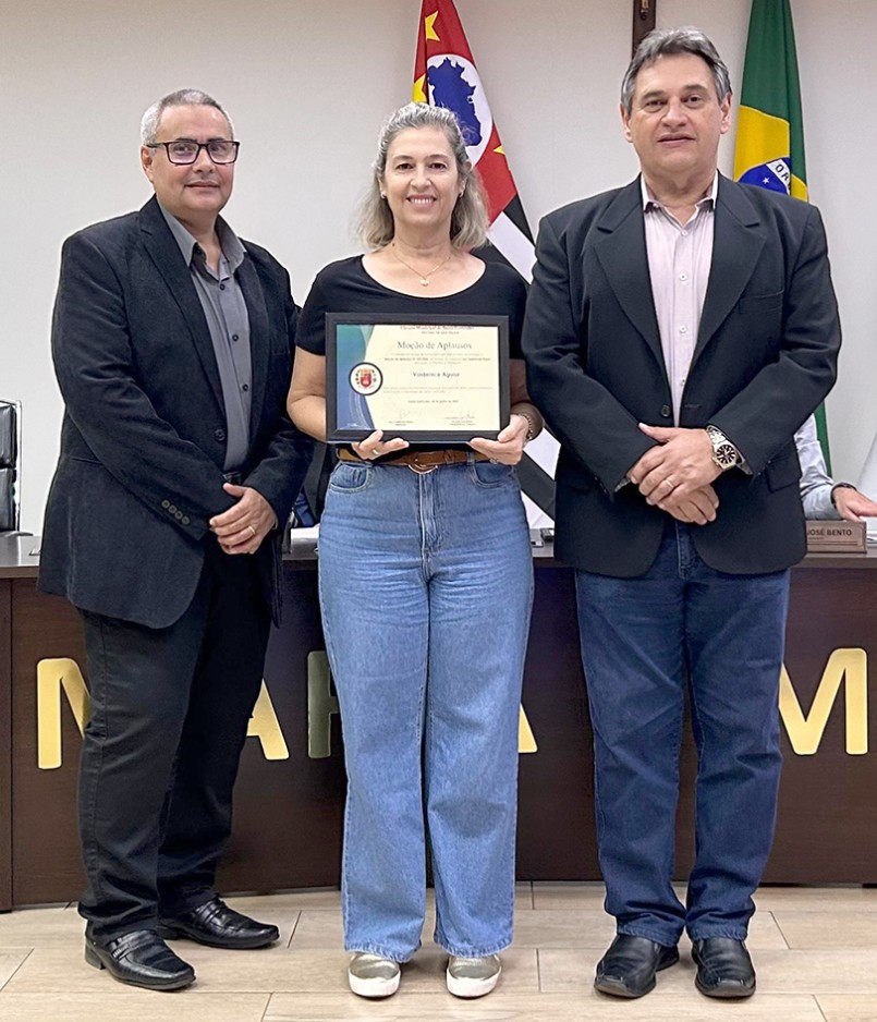 Basso deu prosseguimento às outorgas da honraria “pela contribuição à educação no Município”, principalmente pelo desempenho no Prêmio Destaque Educacional 2025, às professoras: Ana Paula Soares Oliveira, Beatriz de Almeida Freitas Zanotti, Carolina Meyer Barsi, Damaris C. dos Santos Siqueira Pires, Esméria Aparecida Tavolaro Marigo, Keiti Muller, Luciana de Souza Carvalho Guimarães, Marizete Alves Pereira de Deus, Mônica Osaco, Renata dos Santos Malheiros, Valdenice Aguiar e Vanessa do Carmo Felipe Dias.
