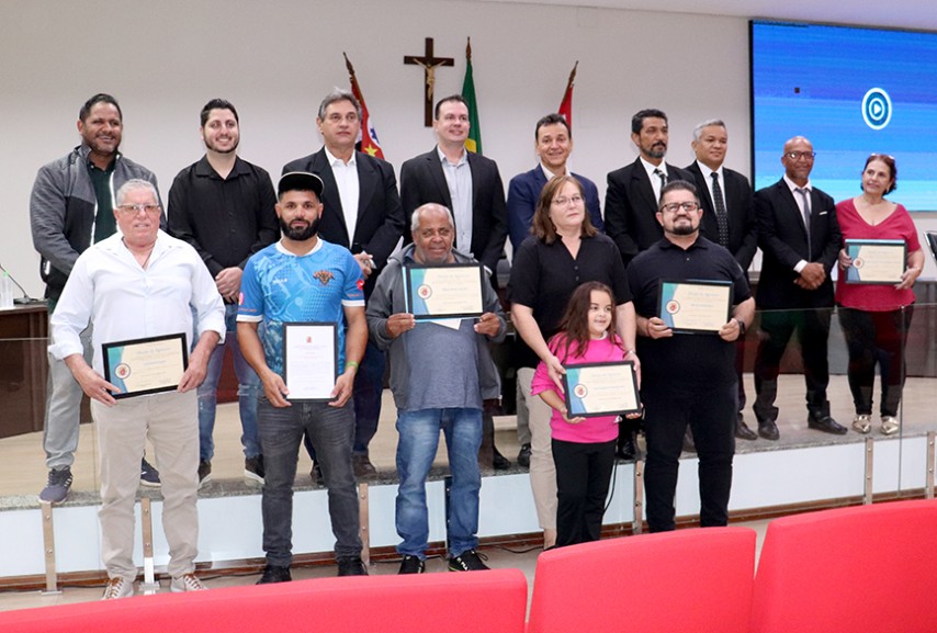 Evento realizado na noite do dia 20 de outubro oficializou a entrega de moções a funcionários públicos, estudantes, profissionais, atletas, esportistas e religiosos. As propostas, aprovadas por unanimidade pelos legisladores, são de autoria dos vereadores Luiz Aparecido Basso (PL), Clayton Robert Santos Barros (Clayton do Espetinho-Republicanos), José Silvanio da Silva Lucena (Pastor Silvanio Ceará-PP), Washington Luiz Pereira (Washington dos Vasos-PSDB), Marcos Gomes de Oliveira (Marcos do Gás-PL), e Sivaldo Elias (Sivaldo da Água-PP).