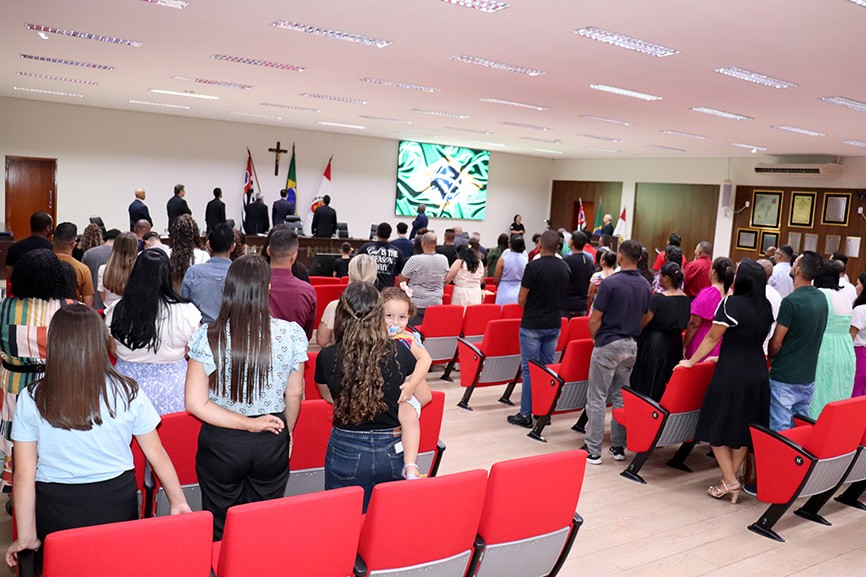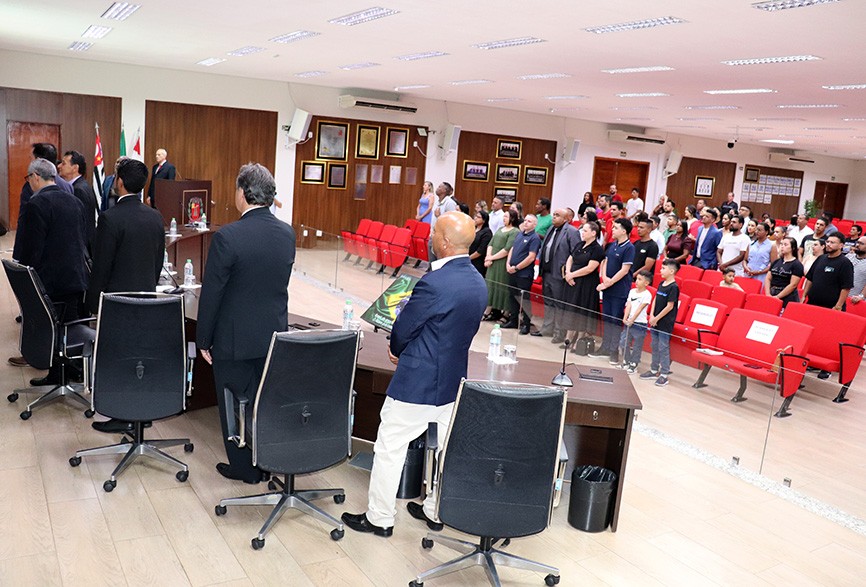 A sessão solene de entrega do Título de Cidadão Santa-Gertrudense teve início com o Hino Nacional e, seguindo o protocolo, o mestre de cerimônia do evento, Edmilson Valdanha, passou a palavra ao presidente da Câmara, Willian José Bento (PL), que parabenizou o Pastor e agradeceu a presença de autoridades, convidados, familiares e amigos do homenageado.
