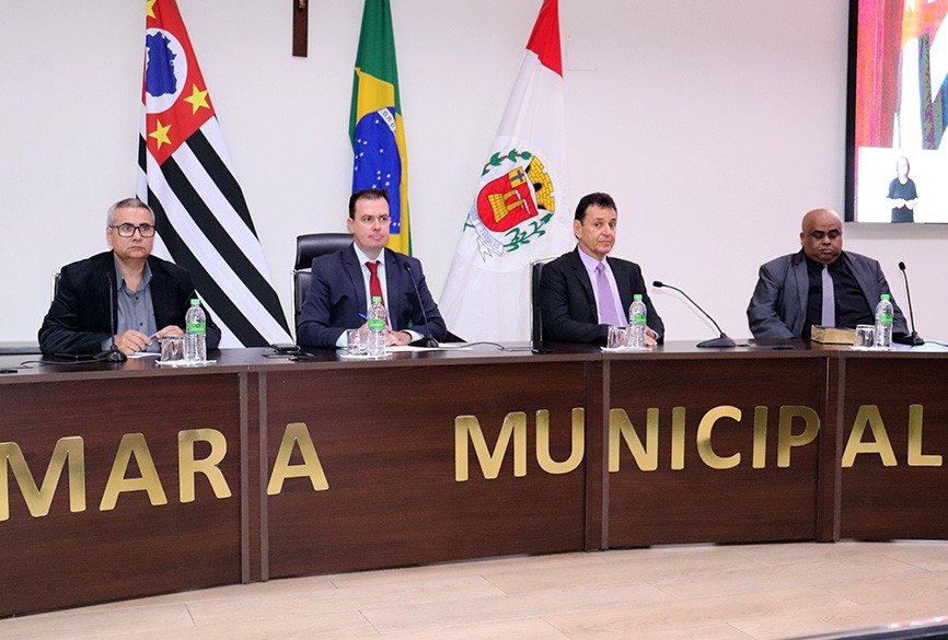 A mesa de honra da sexta sessão solene do ano esteve composta por: no cento, o presidente da Câmara, Willian Bento, ladeado pelo vice-prefeito – Antonio Carlos Candido, e pelos vereadores: Washington dos Vasos – segundo-secretário e autor da propositura, Luiz Basso (PL) - vice-presidente, Sivaldo Elias (Sivaldo da Água-PP) – primeiro-secretário, e Marcos Gomes de Oliveira (Marcos do Gás-PL); pelo presidente do Conselho de Pastores – Pedro Gaspa, e o Pastor Albanir.